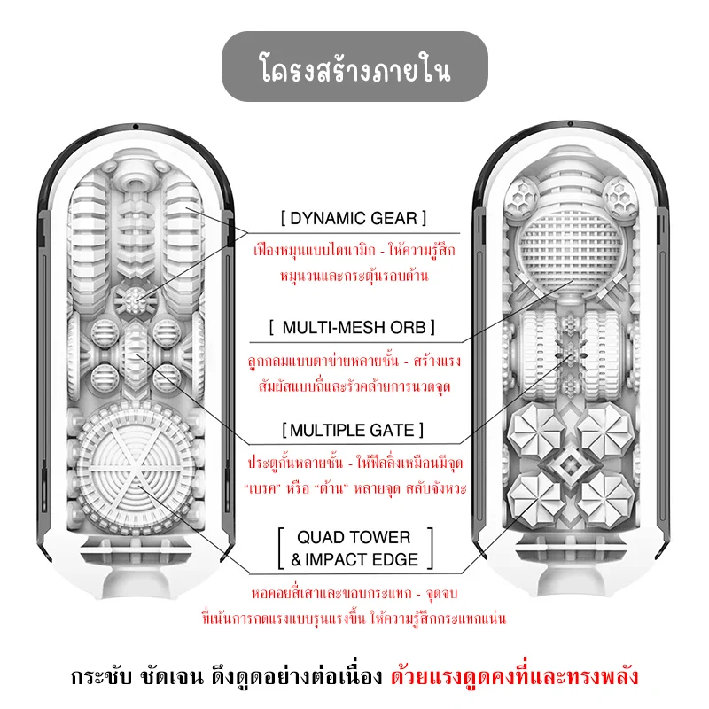 ผลิตภัณฑ์ TENGA พื้นผิวภายในออกแบบด้วยความละเอียดอ่อน ลวดลายซับซ้อน และวัสดุที่ตอบสนองต่อแรงสัมผัสได้เป็นอย่างดี