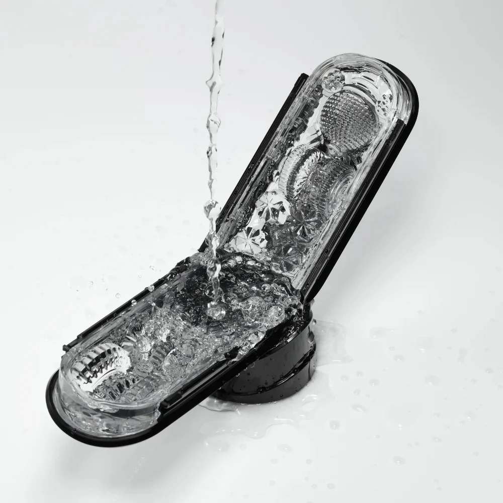 เปิด Tenga Flip Zero Gravity ออกด้วยการถอดโครงล็อกด้านนอก แล้ว “กางออก” ตามแนวกลางของตัวกระบอก หยดเจลหล่อลื่นลงบนพื้นผิวภายในอย่างทั่วถึง โดยเน้นบริเวณช่องทางภายในและจุดสัมผัสต่างๆ เมื่อเสร็จเรียบร้อยแล้ว ให้ปิดอุปกรณ์กลับเข้าที่ พร้อมใส่โครงล็อกเพื่อความมั่นคง - เริ่มต้นใช้งาน