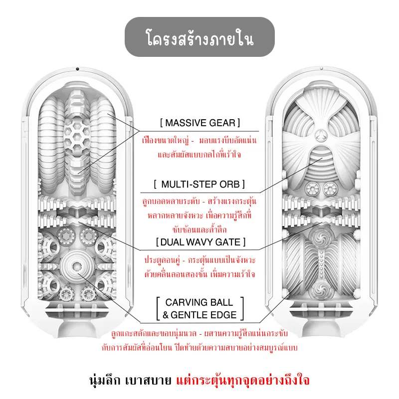 - ภายในถูกออกแบบด้วยลวดลายที่ซับซ้อน ช่วยกระตุ้นอย่างเป็นจังหวะ