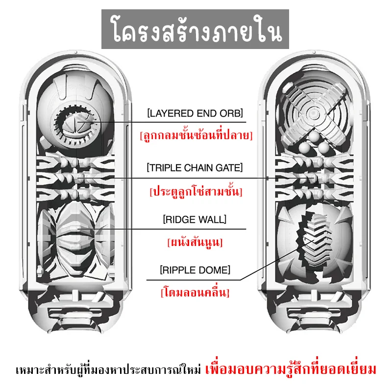 ภายในผลิตจากวัสดุเนื้อนุ่มพิเศษและยืดหยุ่นสูง ให้สัมผัสที่นุ่มลึกและน่าสัมผัสอย่างยิ่ง ทั้งยังออกแบบให้โปร่งใส มองเห็นการเคลื่อนไหวภายในได้ชัดเจน เพิ่มความตื่นเต้นในขณะใช้งานตามความนิยมในปัจจุบัน